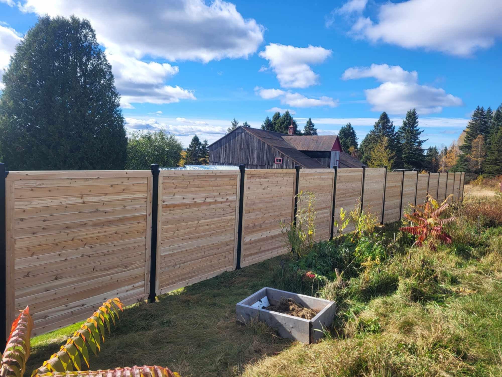 Les clôtures sont conçues avec des planches embouvetées de cèdre blanc.